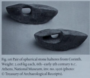 Dos ἁλτῆρες halladas en Corinto que pesan 2kg cada una. Miller (2004, p. 65)