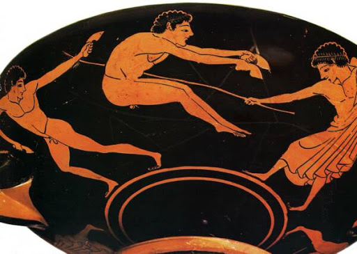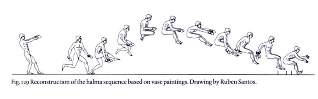 Ilustración de cómo realizaban el salto de longitud los griegos. Miller (2004, p. 67).